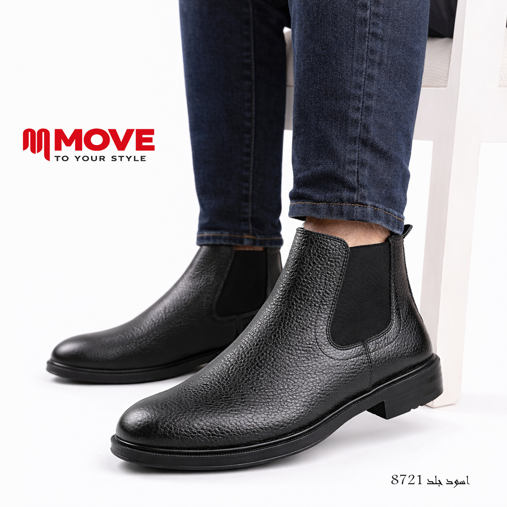بوت رجالي أنيق بتصميم عصري سهل الارتداء، مناسب للشتاء والخروجات واللوك الكاجوال.