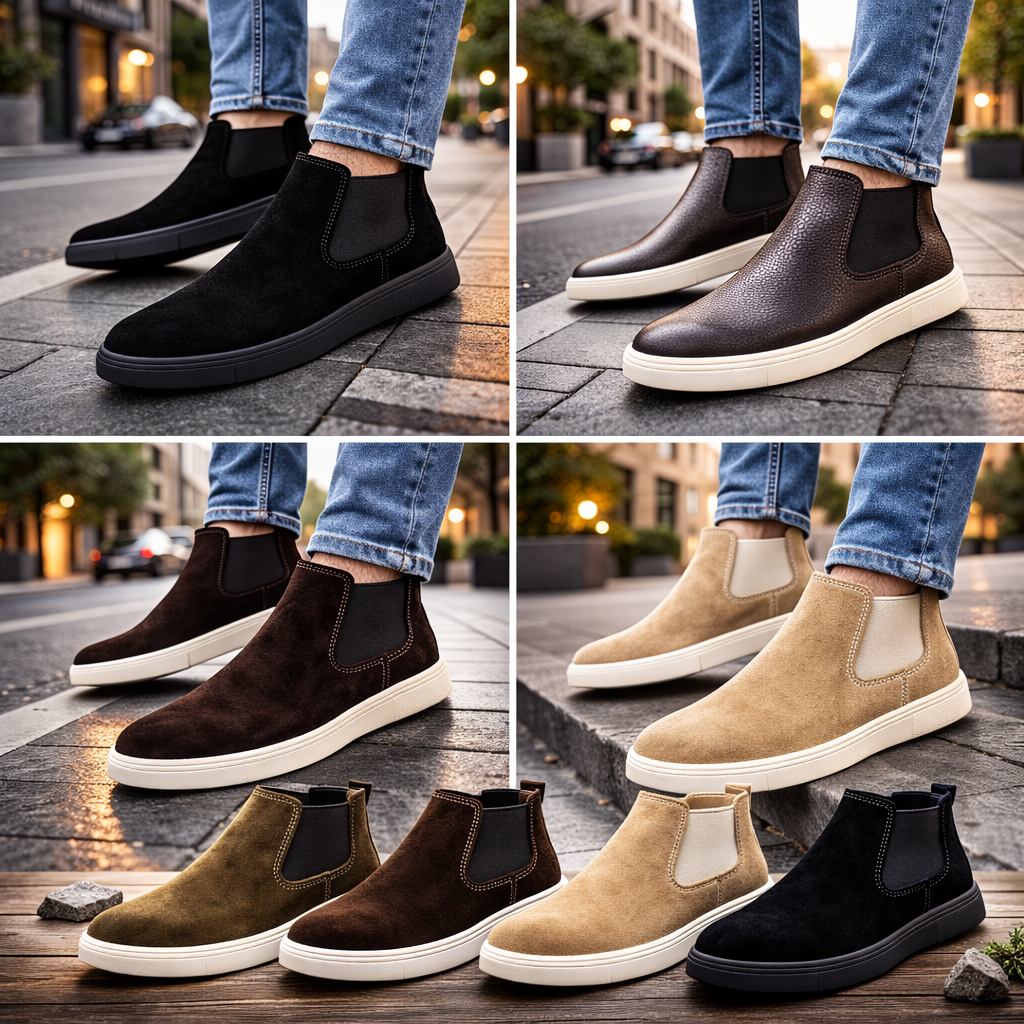 بوت رجالي بتصميم تشيلسي سهل اللبس، مع نعل اوف وايت خفيف يدي شكل شبابي مميز. مناسب للبس اليومي والخروجات والستايل الكاجوال.